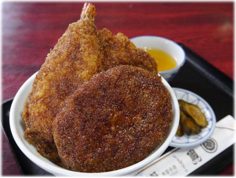 カツとエビフライを一緒に食べたい」という方にはカツが2枚エビが1枚のミックスカツ丼をどうぞエビがお口の中をアッサリとさせてくれます。 | |||